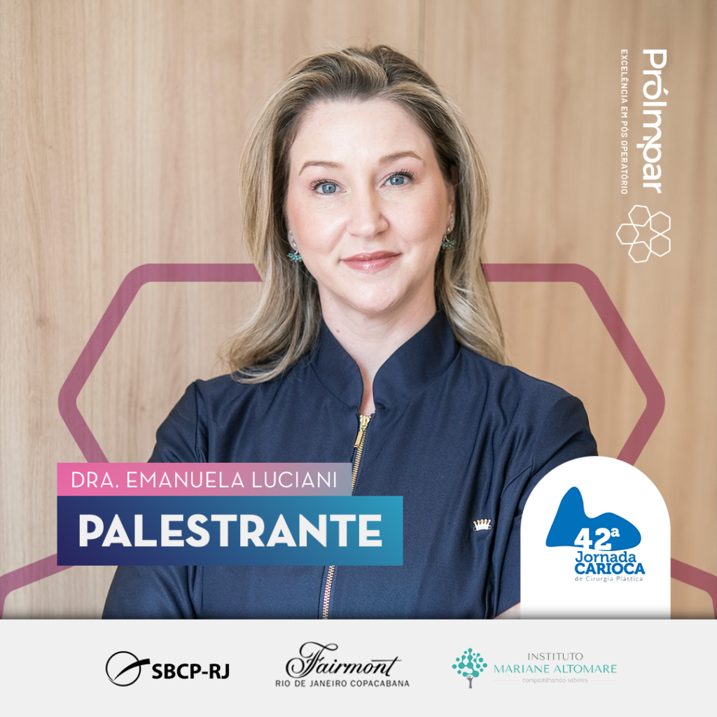 A Dra. Emanuela Luciani estará presente no I Encontro de Fisioterapia em Cirurgia Plástica da SBCP-RJ, pelo Instituto Mariane Altomare, no dia 05/08, no Hotel Fairmont (RJ), para palestrar sobre a importância do exercício terapêutico para prevenção de disfunções neuromusculoesqueléticas após cirurgias plásticas. Fisioterapeuta especializada em pré, intra e pós-operatórios de cirurgias plásticas e vasculares, a Dra. Emanuela é certificada LTF®️/IMA – Liberação Tecidual Funcional e parte importante da nossa equipe multidisciplinar e extremamente capacitada.